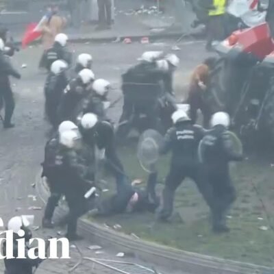 Police seen kicking demonstrator at farmers’ protest in Brussels
