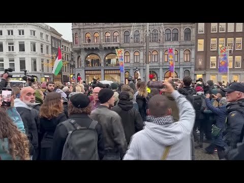 Riot police tried to break up crowd of protesters gathered in Amsterdam’s Dam Square who were defying a court-extended ban on demonstrations that followed clashes with Israeli soccer fans.