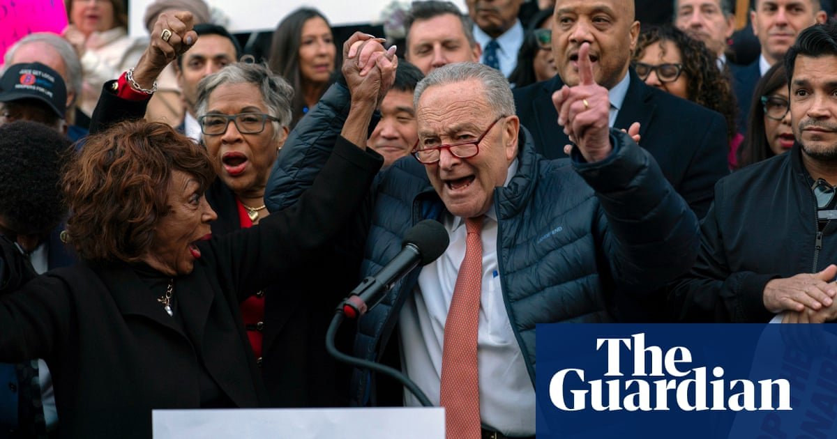 About a dozen members of Congress, including the representatives Maxine Waters, Al Green and Ayanna Pressley and the senators Jeff Merkley, Chuck Schumer and Richard Blumenthal, joined the crowd. The representative Jasmine Crockett’s voice boomed: “We are not going to sit around while you go and desecrate our constitution. We are going to be in your face and on your asses!”