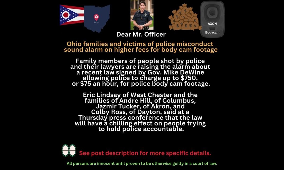 Family members of people shot by police and their lawyers are raising the alarm about a recent law signed by Gov. Mike DeWine allowing police to charge up to $750, or $75 an hour, for police body cam footage.