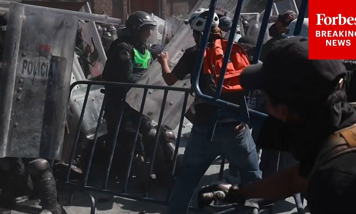 Police and demonstrators clash during wild protests in Mexico City, Mexico.